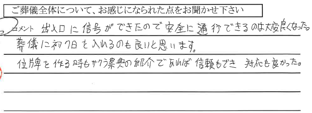 こちらの希望をきいていただき、よい思い出となる葬儀となりました。ありがとうございました。