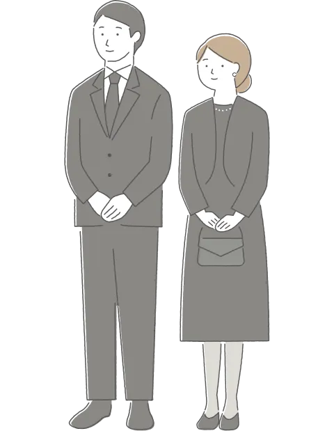 家族葬は小規模であっても葬儀であることに変わりはないため、ご遺族・参列者ともに基本的には一般葬と同じ喪服(ブラックフォーマル)を着用するのがマナーです。