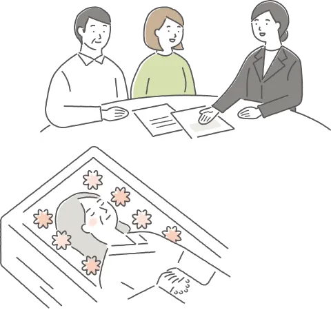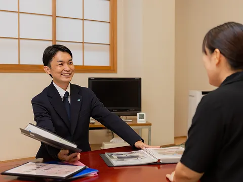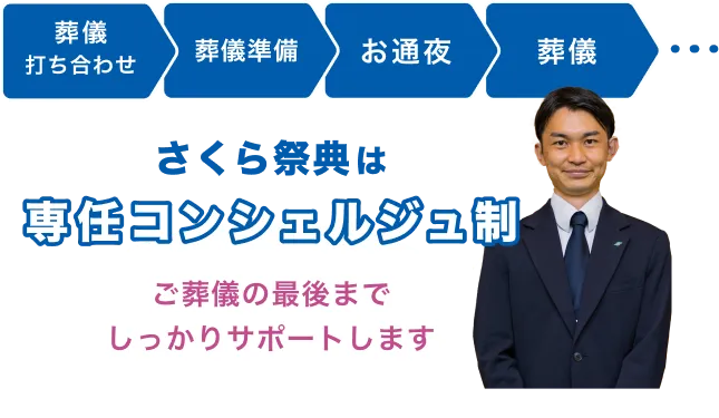 さくら祭典では、ご葬儀の打ち合わせから、葬儀当日、葬儀後のアフターサポートまで、同じ専任担当者がワンストップで寄り添います。