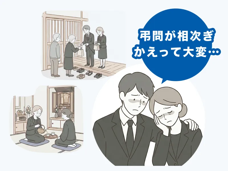 家族葬で参列者を絞った結果、葬儀に来られなかった方々が後日自宅に弔問に訪れ、その対応が何日にもわたって続いてしまうことがあります。