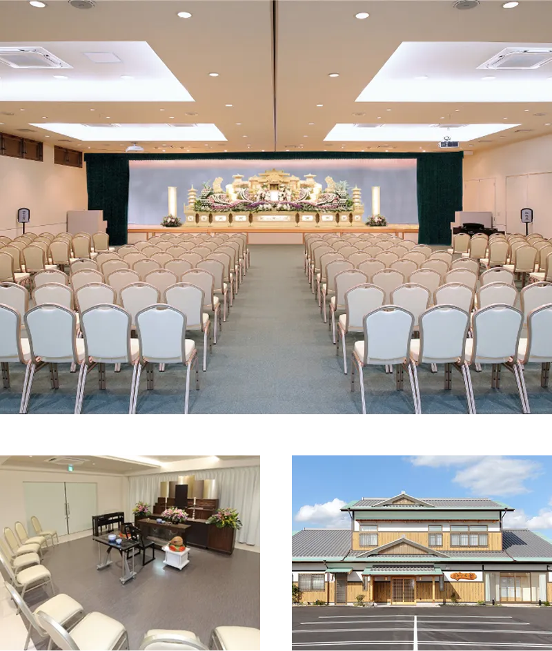 家族葬から一般葬まで幅広く対応できる設備と、県内最大級の駐車場を完備。車で来場する親族が多い葬儀でも、駐車スペースを心配せずにお越しいただけます。