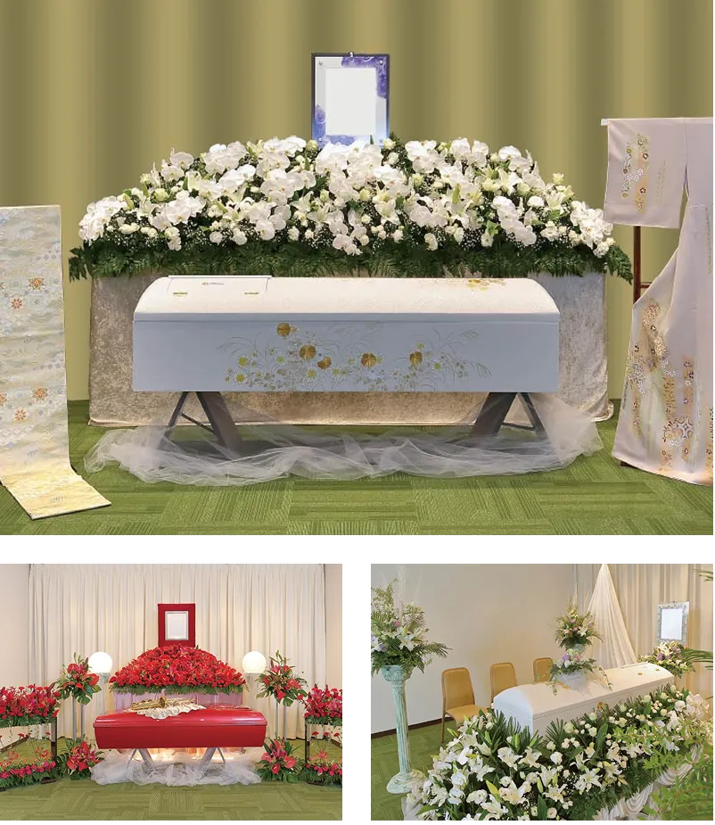 また船・ゴルフ・写真など、故人が大切にしていた趣味や思い出をモチーフにしたたオリジナル祭壇で、その方らしさを感じられるお別れの空間づくりを叶えます。