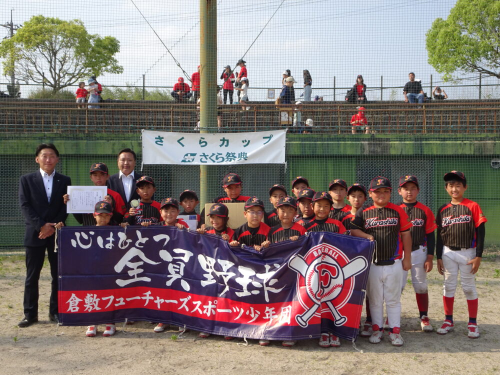 第6回さくらカップ学童軟式野球大会 5月26日 第6回さくらカップ学童軟式野球大会を開催いたしました。 優勝 藤田軟式野球スポーツ少年団 準優勝 中庄ビックボーイズ 三位 桜が丘レッドファイヤーズ 参加チーム 西大寺ライノス 可知サンパワーズ 倉敷フューチャーズ 参加していただいた、選手、保護者、関係者の皆様暑い中誠にありがとうございました。 毎年開催予定をしておりますので、来年も沢山練習をして、 各選手が成長した姿を見るのを楽しみにしています。 各チームこの度はご参加ありがとうございました。