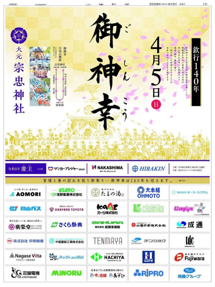 大元宗忠神社の「御神幸(ごしんこう)」に協賛しております✨