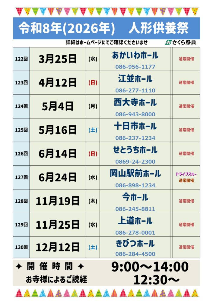 さくら祭典の人形供養祭は入場・供養料無料です。