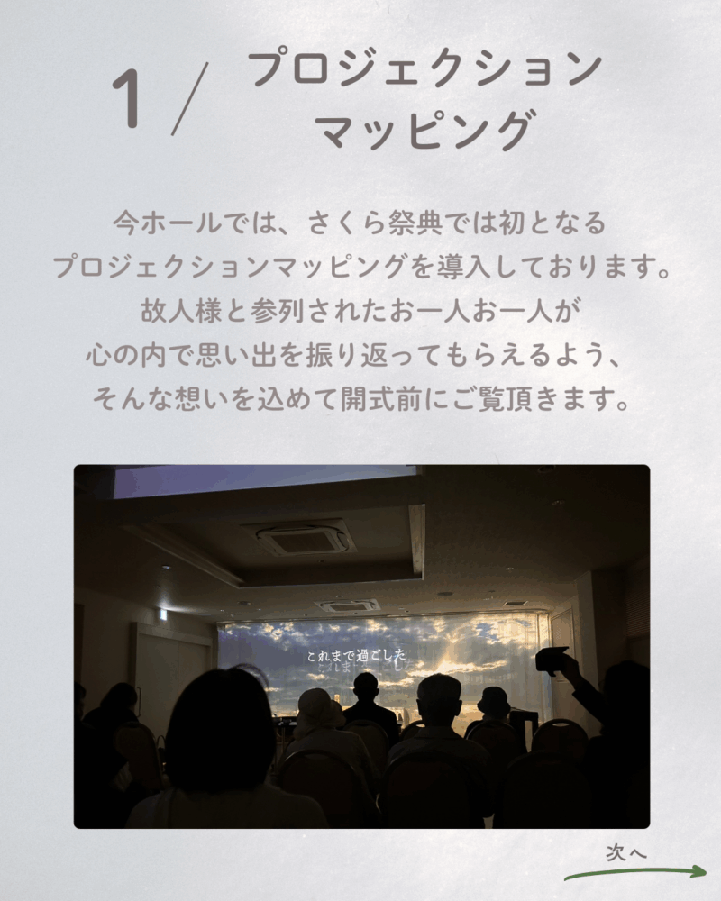 お越し頂いた方に楽しんで頂きながら、最近の葬儀の色々なカタチを知ってもらえるようにと、