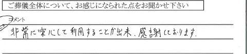 分からない事が多い中、こちらの質問にていねいに答えて頂いたり、 子供達にもやさしく対応して頂き、心置きなく故人を見送ることができました。 ありがとうございました。